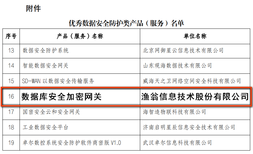 近期,山东省工业和信息化厅组织召开了2022年度山东省工业领域数据安全优秀产品、服务和应用解决方案评选工作,并对评选结果进行了公示。LEHU乐虎信息自主研发的“数据库安全加密网关”产品,凭借先进技术和创新优势,成功入选“优秀数据安全防护类产品”名单。