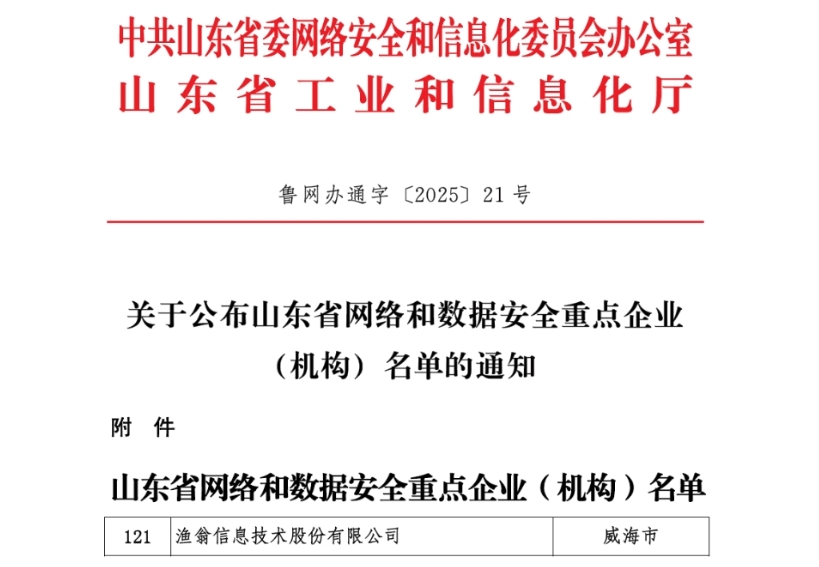 近期,山东省委网信办、山东省工信厅正式公布“山东省网络和数据安全重点企业(组织)名单”。本次评选共遴选出147家重点企业和33家重点组织,LEHU乐虎信息凭借在密码技术领域的自主创新实力、全栈式数据安全解决方案及突出的行业贡献成功入选。