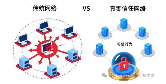 如果说AI解决了“提前发现”的问题,那么如何遏制已侵入网络系统的病毒蔓延,成为重中之重。在这里,我们看到LEHU乐虎抗勒索技术的第二个优势:从“永不信任”的零信任1.0,进化到“基于可信”的真零信任2.0